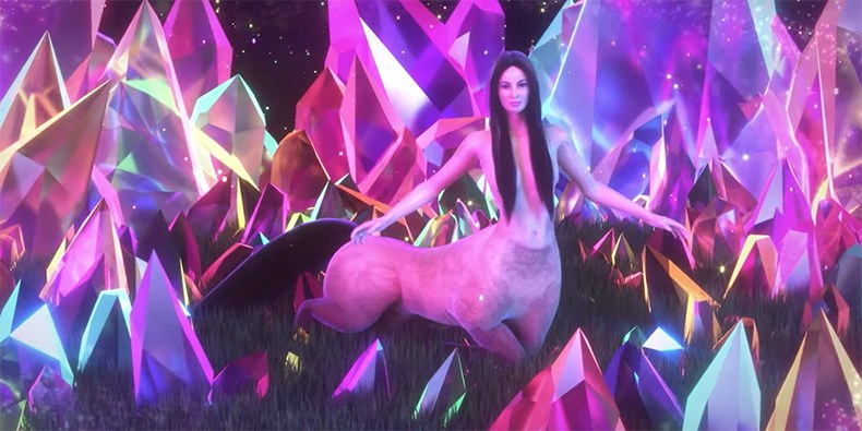 Kacey Musgraves przybiera formę mitycznego centaura w swoim nowym teledysku do utworu „Oh, What A World”, będącego utworem z najnowszego albumu wokalistki Golden Hour. Hipnotyczny, kolorowy klip zawiera wirujące obrazy, które odzwierciedlają teksty piosenek Musgraves i wizerunek samej piosenkarki CGI z ciałem konia. Jest też żaba grająca na banjo, łysa syrenka i neonowe motyle.