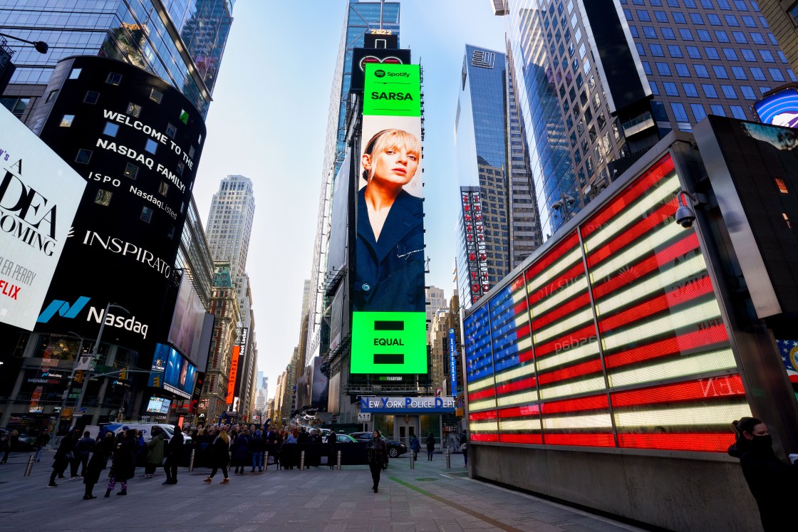 Billboard z wizerunkiem Sarsy właśnie zawisł na legendarnym Times Square w Nowym Jorku.