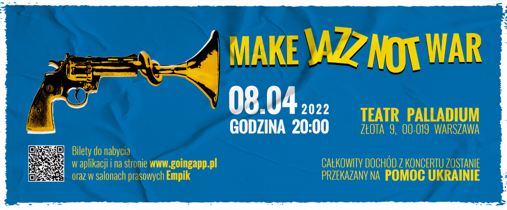 8. kwietnia 2022 roku w Teatrze Palladium odbędzie się charytatywny koncert “MAKE JAZZ NOT WAR”, podczas którego wystąpią najważniejsi przedstawiciele polskiej sceny jazzowej.