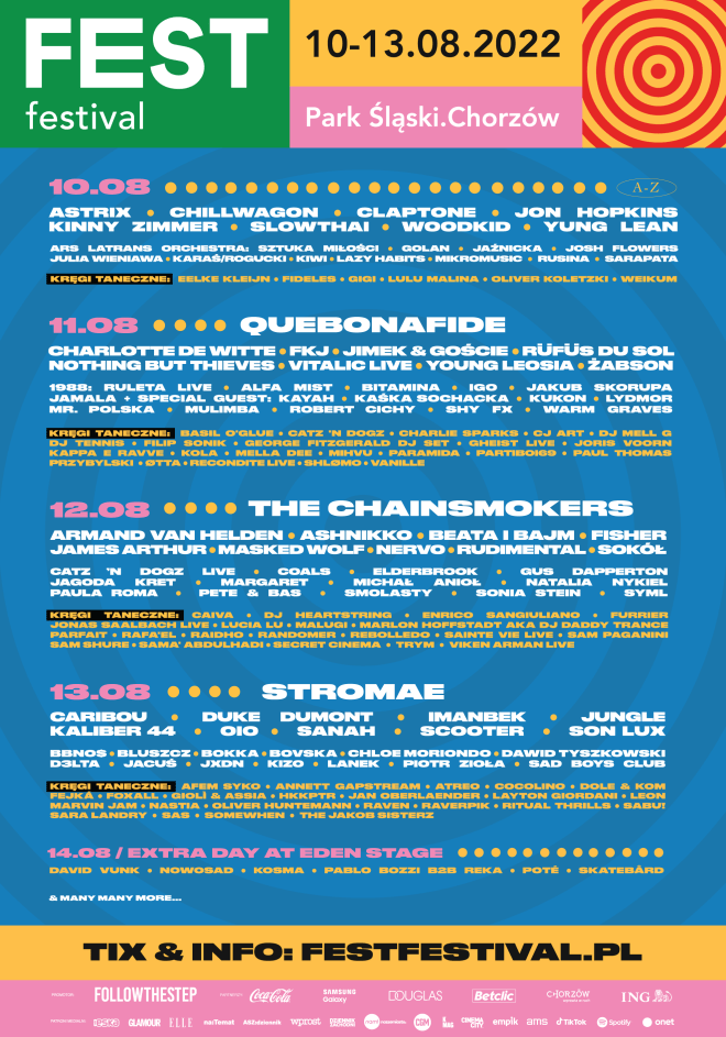 Już 10-13 sierpnia w chorzowskim Parku Śląskim odbędzie się 3. edycja FEST Festivalu. Wystąpią m.in.: Stromae, The Chainsmokers, Quebonafide, Charlotte de Witte, Woodkid, Jungle, Duke Dumont, Nothing But Thieves, James Arthur i inni. Ponad 200 wykonawców na 9 głównych scenach oraz strefach dodatkowych – tak prezentuje się FEST Festival 2022, który zbliża się wielkimi krokami!