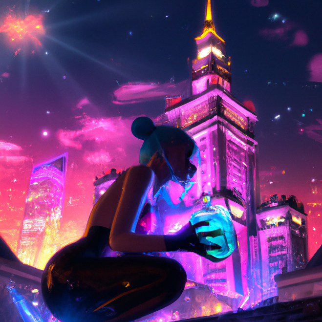 Do numeru powstała cyberpunkowa okładka stworzona za pomocą sztucznej inteligencji.