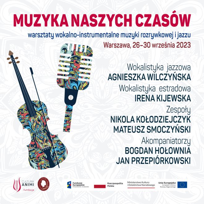 Fundacja Cultura Animi po raz czwarty organizuje warsztaty wokalne i instrumentalne (zespołowe) „Muzyka Naszych Czasów”. Impreza odbędzie się 26–30 września bieżącego roku w Warszawie. Funkcję Dyrektora Artystycznego warsztatów objęła Agnieszka Wilczyńska. Zajęcia będą prowadzone w Koncertowym Centrum Edukacji Muzycznej przy Zespole Państwowych Szkół Muzycznych im. Fryderyka Chopina w Warszawie – partnerze warsztatów. Koncert finałowy będzie miał zaś miejsce na Uniwersytecie Muzycznym Fryderyka Chopina Warszawie.