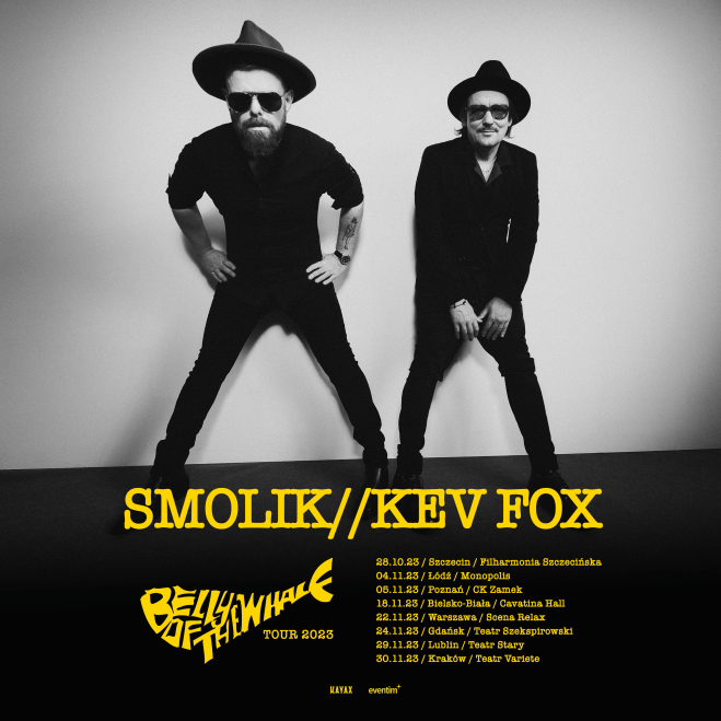 Duet SMOLIK//KEV FOX rusza w trasę koncertową z nowym materiałem muzycznym. Artyści znani z niezwykle energetycznych koncertów zaprezentują premierowy materiał z nadchodzącej, drugiej płyty zatytułowanej “Belly Of The Whale” (premiera 29 września). Do tej pory album promowały takie single jak “Promises” oraz “Smoke and Mirrors” – bardzo przebojowe i zarazem rasowe pozycje w katalogu duetu, swoją stylistyką czerpiące z lat 90-tych. Poza nowościami zespół zagra także przebojowe utwory z płyty “SMOLIK//KEV FOX” i EPki “Queen Of Hearts”.