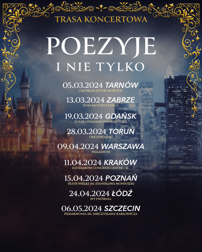 To prawdziwa gratka dla wielbicieli tej bardziej lirycznej strony sanah. Na koncertach na pewno nie zabraknie utworów z płyty „sanah śpiewa Poezyje”, ale fani będą mogli liczyć także na piosenki z pozostałych albumów. Trasa „Poezyje i nie tylko” obejmować będzie koncerty w najpiękniejszych salach w Polsce. Artystka wystąpi na takich obiektach, jak m.in.: CKK Jordanki, ICE Kraków Congress Centre, Teatr Wielki im. Stanisława Moniuszki w Poznaniu czy Filharmonia im. Mieczysława Karłowicza w Szczecinie. Start sprzedaży jutro o 12:00 na eventim.pl.
