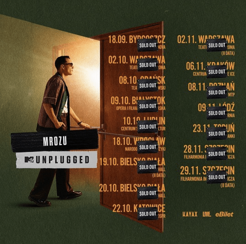 Mrozu aktualnie intensywnie koncertuje, cała trasa została wyprzedana do ostatniego biletu. Słuchacze artysty od 20 października będą mogli kupić płytę MTV Unplugged na koncertach.