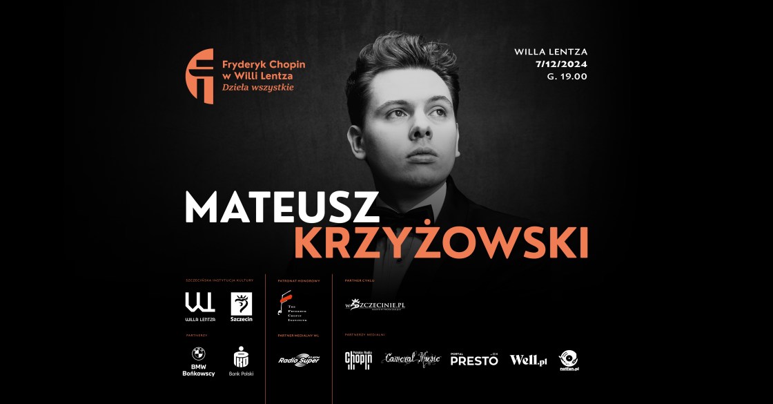 Tym razem polskie A-dur op. 13, Walce, Etiudy, Mazurki i Poloneza As-dur op. 53 interpretować będzie Mateusz Krzyżowski – zdobywca pierwszych nagród przyznanych podczas ważnych imprez muzycznych, takich jak: Międzynarodowy Konkurs Pianistyczny im. Ignacego Jana Paderewskiego w Bydgoszczy (2022), XII Międzynarodowy Konkurs Młodych Pianistów „Arthur Rubinstein in memoriam” w Bydgoszczy (2021). Jest absolwentem Uniwersytetu Muzycznego Fryderyka Chopina w Warszawie (klasa prof. Joanny Ławrynowicz-Just.