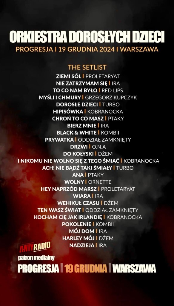 Orkiestra Dorosłych Dzieci to nie tylko koncert – to święto polskiego rocka, pełne energii, emocji i wspólnego śpiewania. Zaproś bliskich, znajomych, przyjaciół i razem przeżyjcie tę muzyczną podróż w czasie. Ten wieczór z pewnością zapisze się w Waszej pamięci na długo!